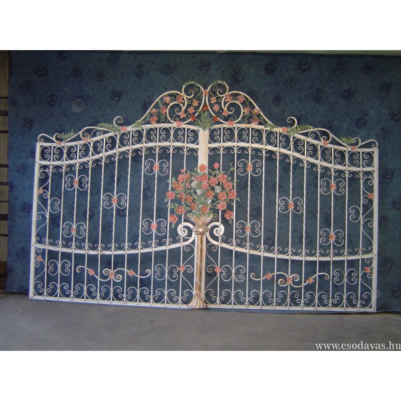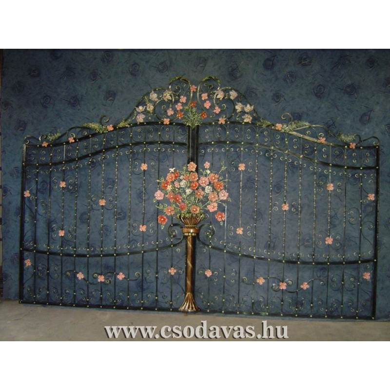 Kovácsoltvas exkluzív virágcsokros kétszárnyú kapu.