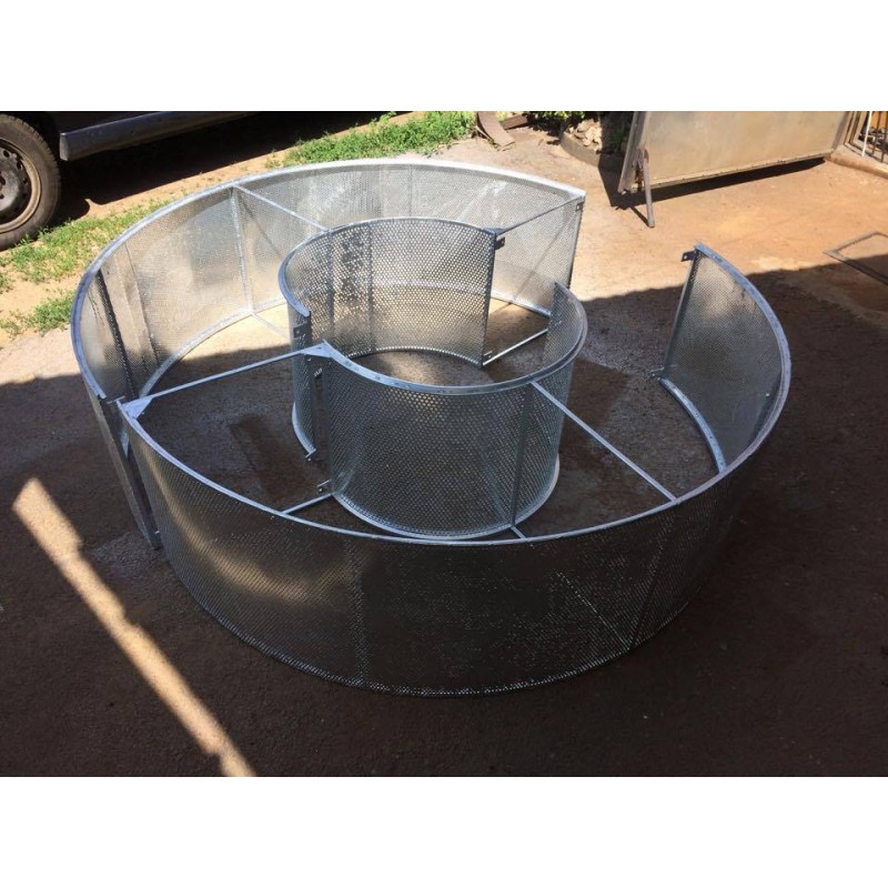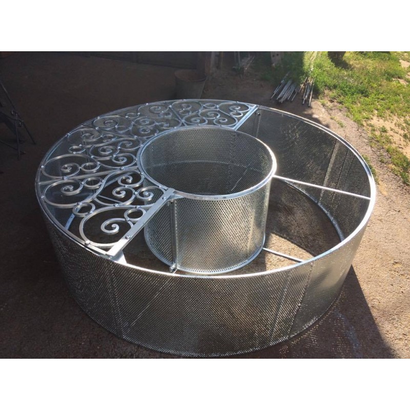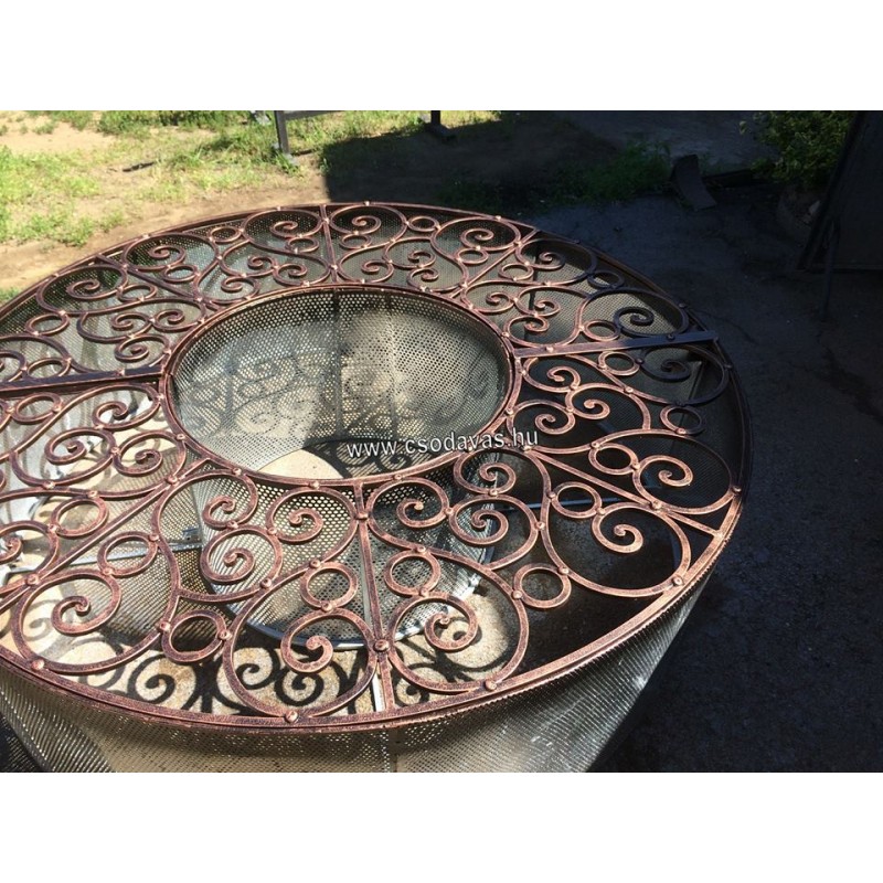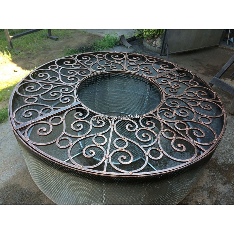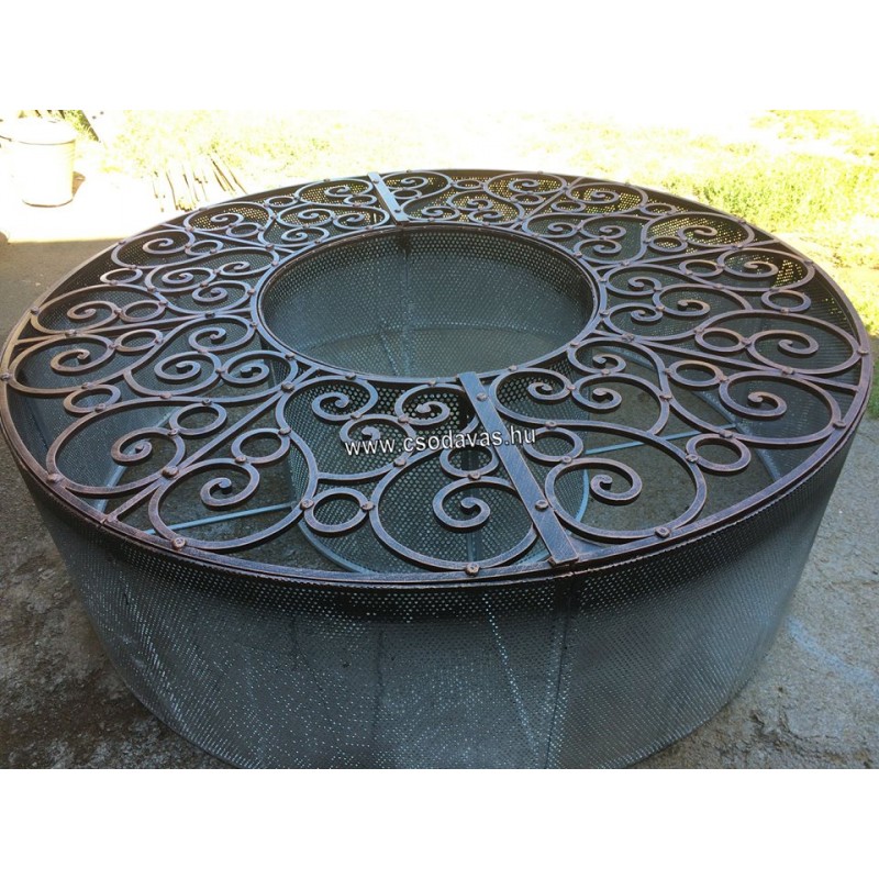 átmérő: 160 cm, magassága 50 cm, 12-es négyzetacélból készült. Horganyozott kivitelben