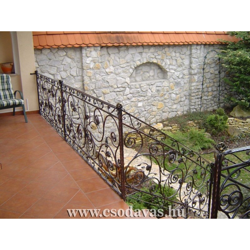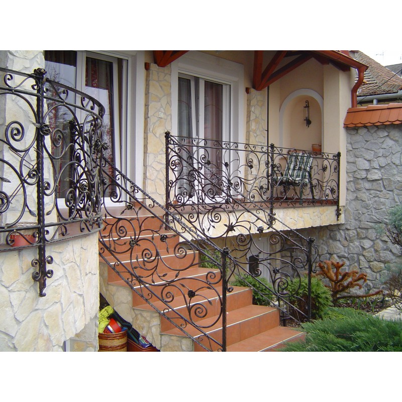 16-os gömbacél kovácsolt diszek 12 gömbacélból kézi kovácsolt ,rózsa diszek és levelekkel könnyed de látványos diszitésű korlát minta.