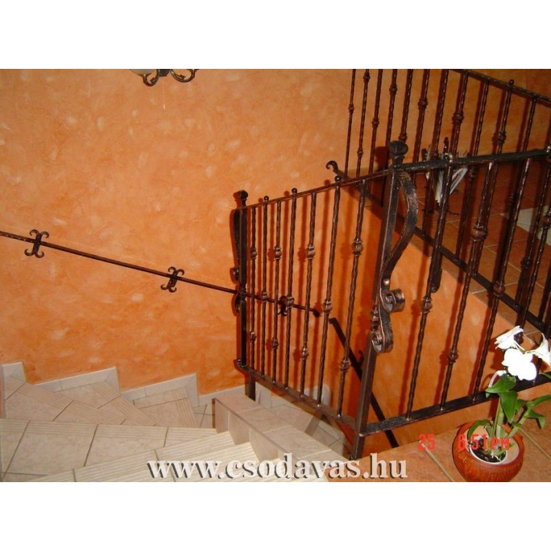 Élkovácsolt anyagokbol összeállitott egyszerű de mégis látványos korlátminta. Készül 12 illetve 16 négyzetacélból , tetszőleges antikolással , a képen bronz antikolással.