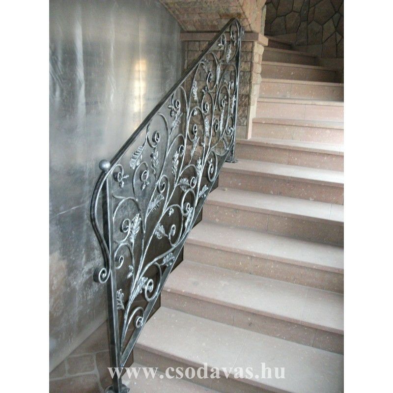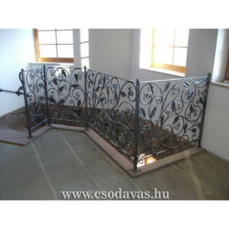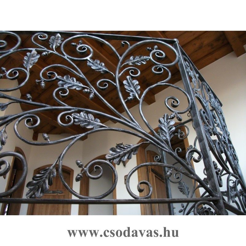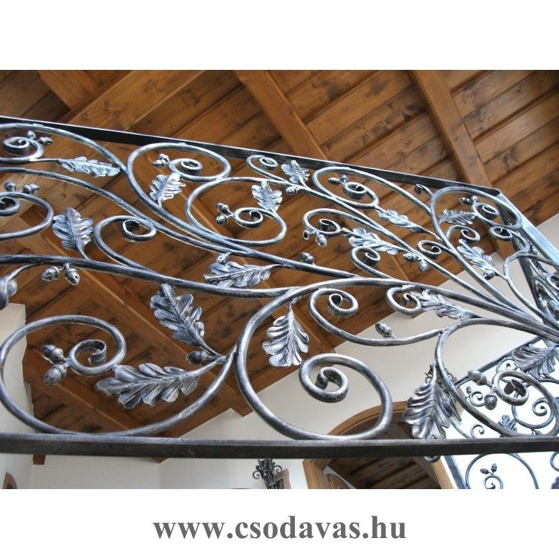 Egyedi látványos stílus , tölgy levelek és makk diszítéssel ,anyaga 16 gömbacél végek kovácsolva levelek 5 mm lemezből kovácsolva , antikolt ezüst vagy bronz szinekben a korlát méter ára 130000Ft .