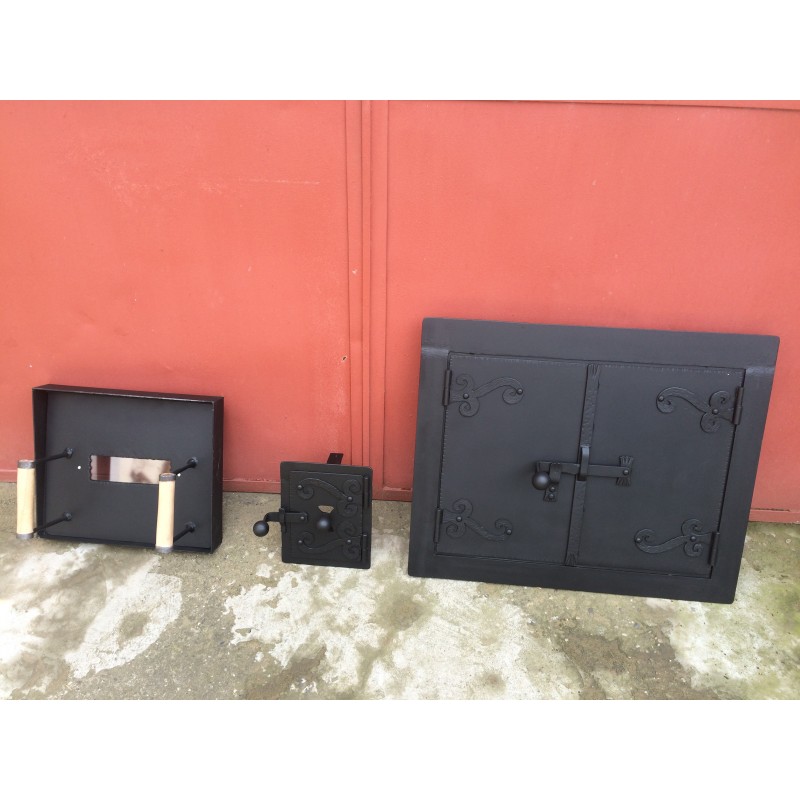 Kovácsoltvas régi hagyományos belső kiemelhető kemence ajtó 0002.