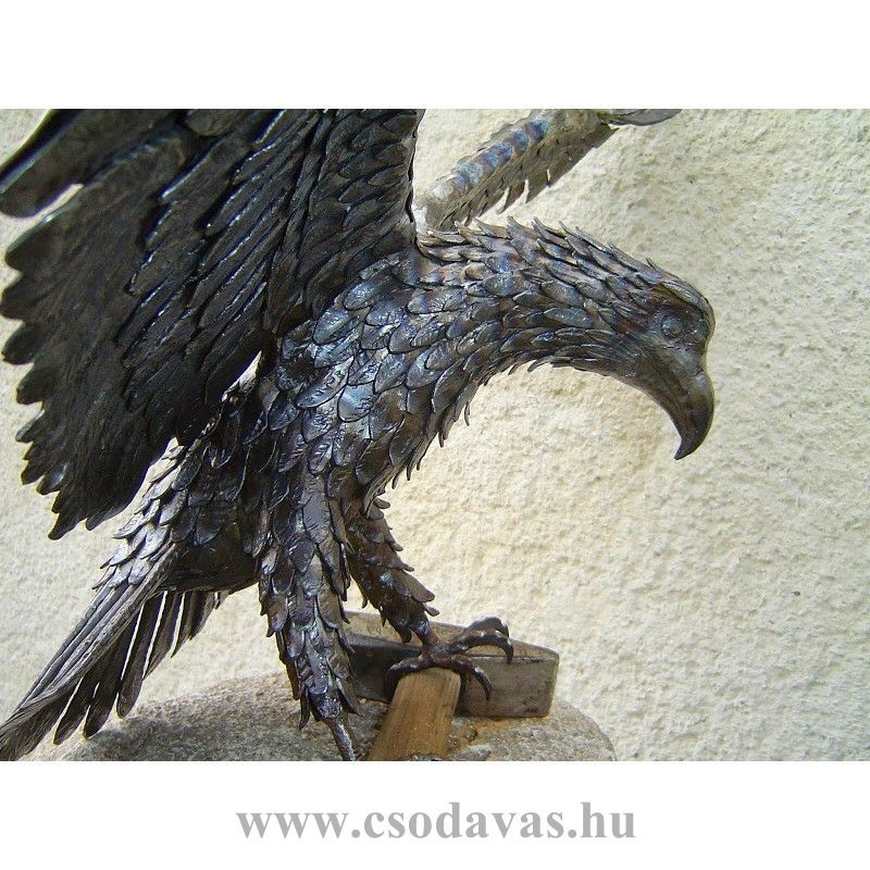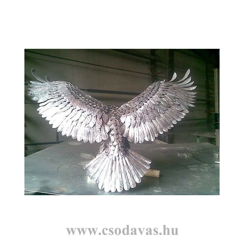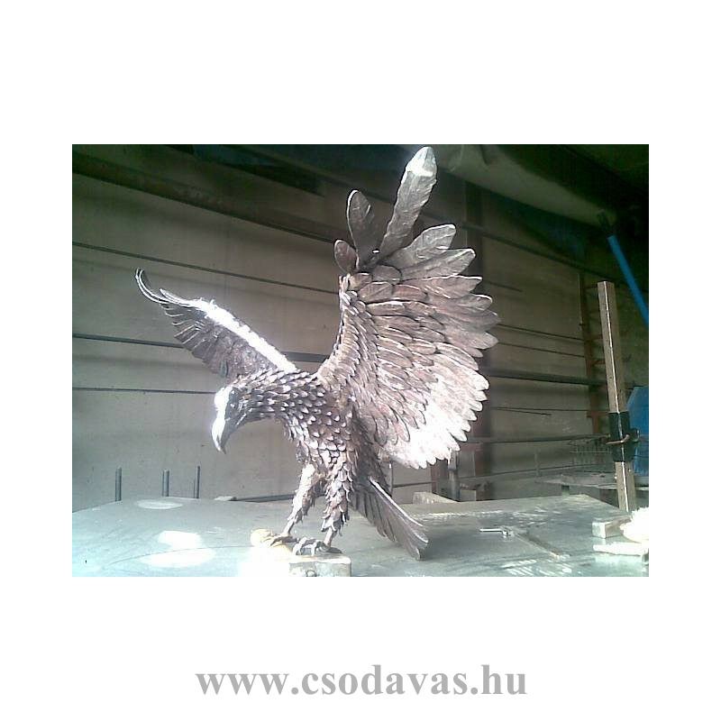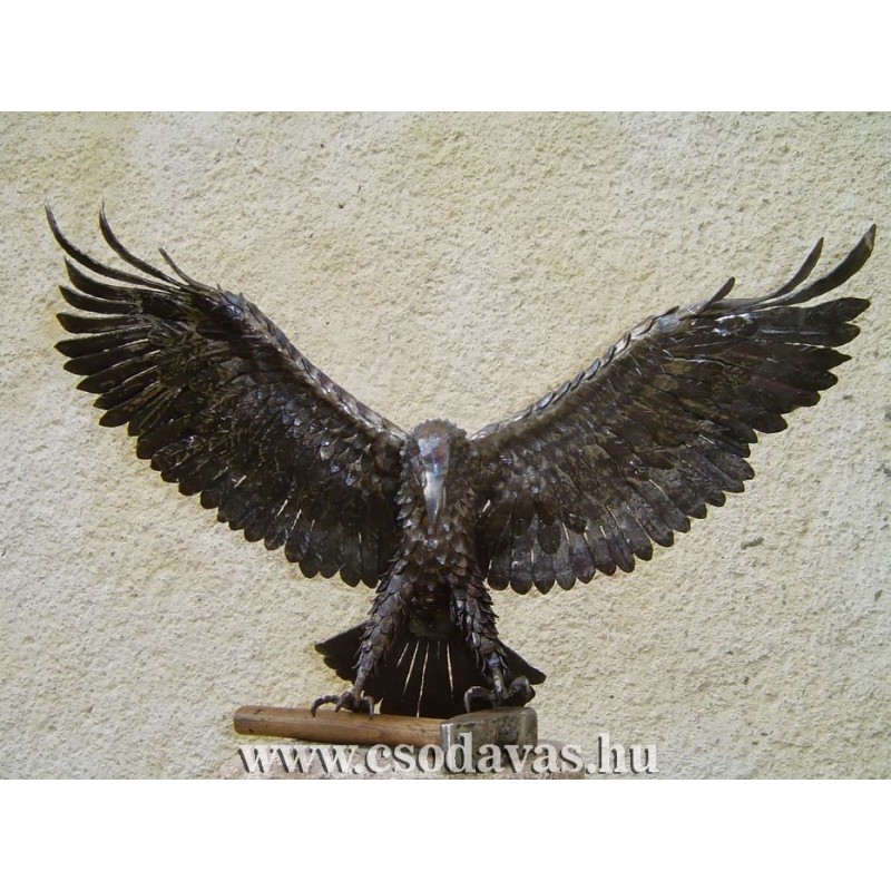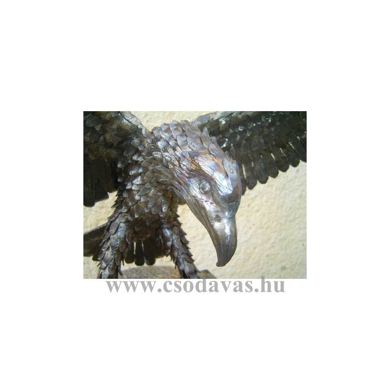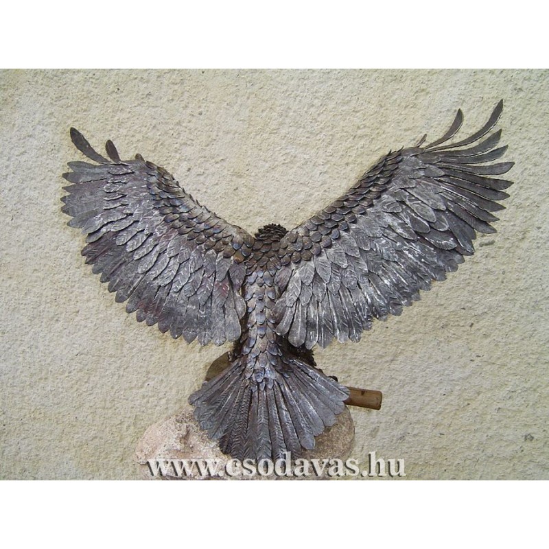 Kovácsolt Sas 0001. 55cm magas 60 cm széles súlya 15 kg . Finoman kidolgozott egyedi kovácsolt Sas madár , tolai 12 gőmbacélbol nyujtva kovácsolva. Ára : 330000Ft.