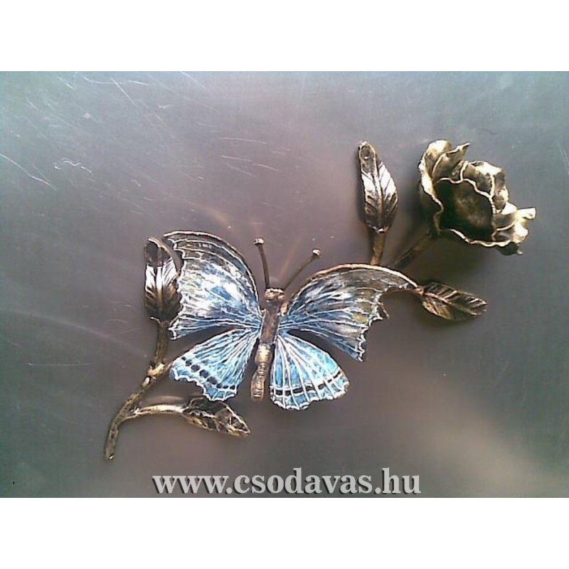 Rózsás pillangó . Egyedi kézikovácsolt és festett rózsaszál pillangóval egyedi ajándék , rózsa szárába Nevet is gravirozunk és szinben is tőbb változatot készitünk . A képen látható rózsa ára 18000 Ft .