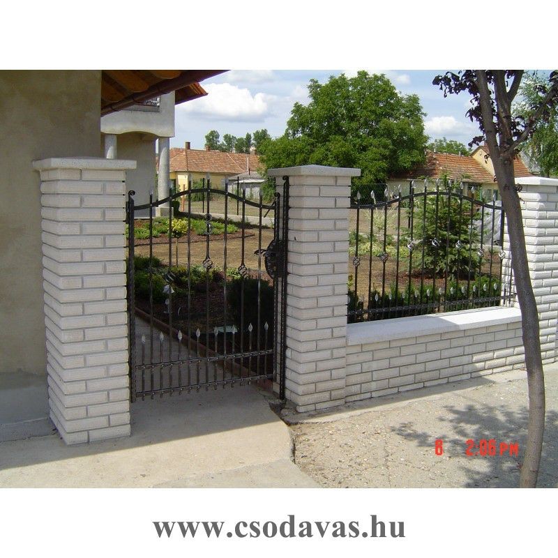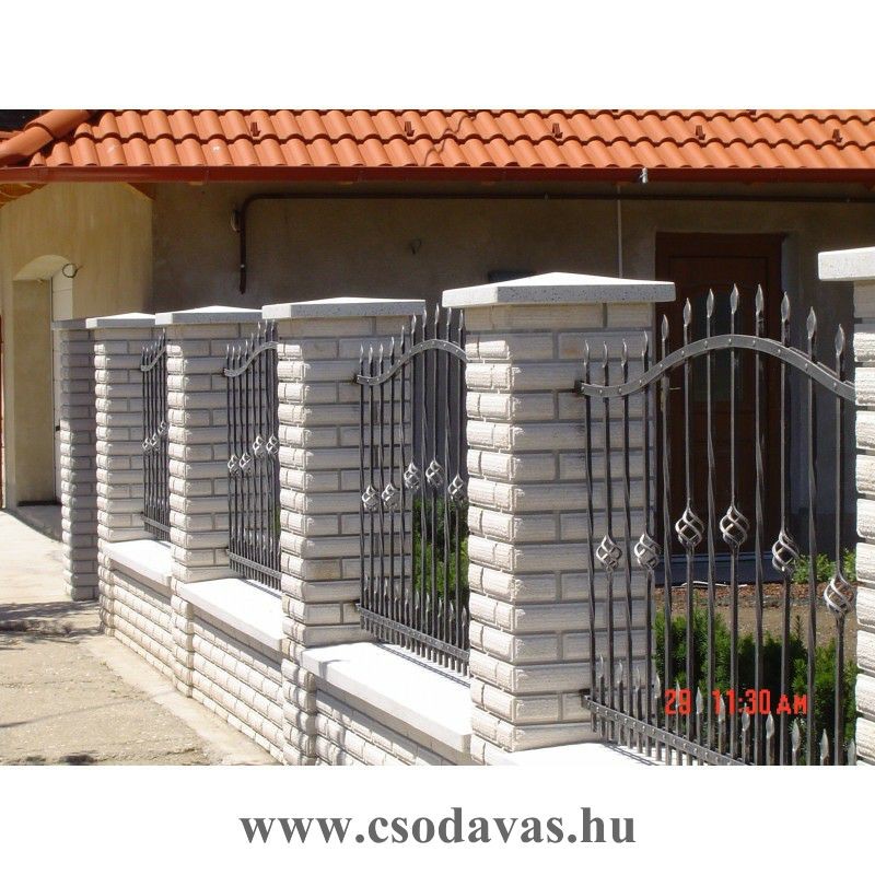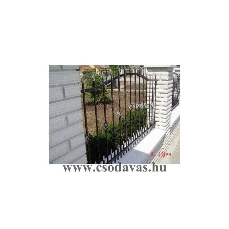 Tobozos kerités 0001. Közkedvelt mintázatú kerités elem kőzepén csavart tobozdisz , és csavart pálca amelyek 12,14.16 négyzetacélbol készülnek , képen látható mintázatban plussz alsó kis pálcákkal süritve a kis házi kedvencek igy biztosan nem tudnak átbujni . Kerités elem magassága 110 cm ezüst antikolt szinben