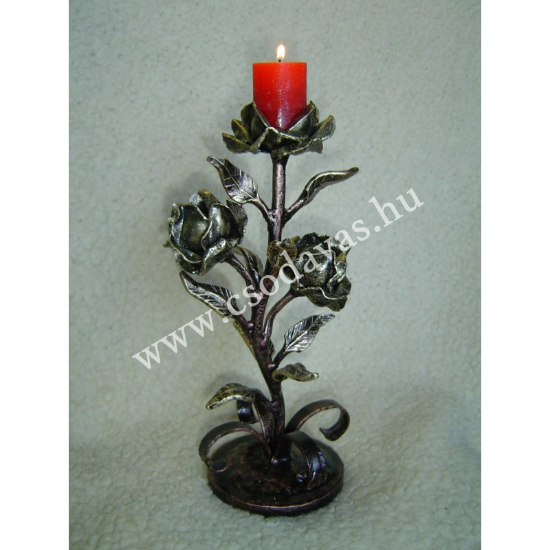 kovácsoltvas 3 rózsás gyertyatartó GY004