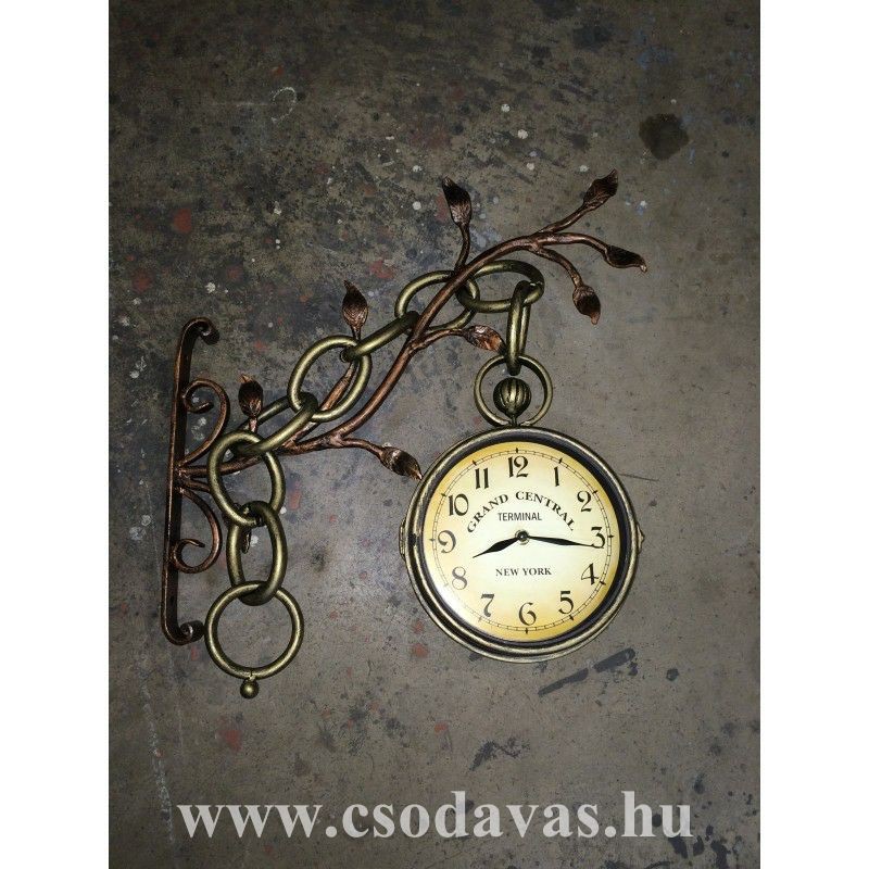 Zsebóra ,kültéri óra . kétoldalas számlappal , faltól 70 cm kiálló 2 db csavarral rögzithető kültéri használatra is megfelelő ,vizálló .
