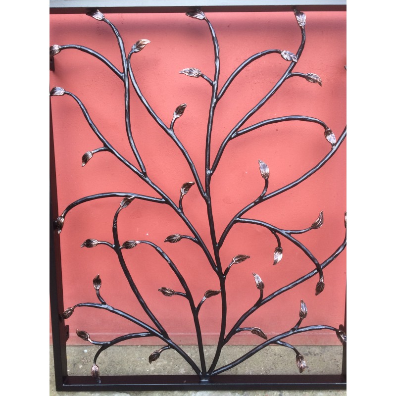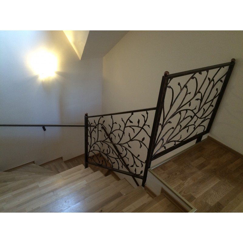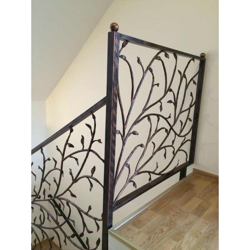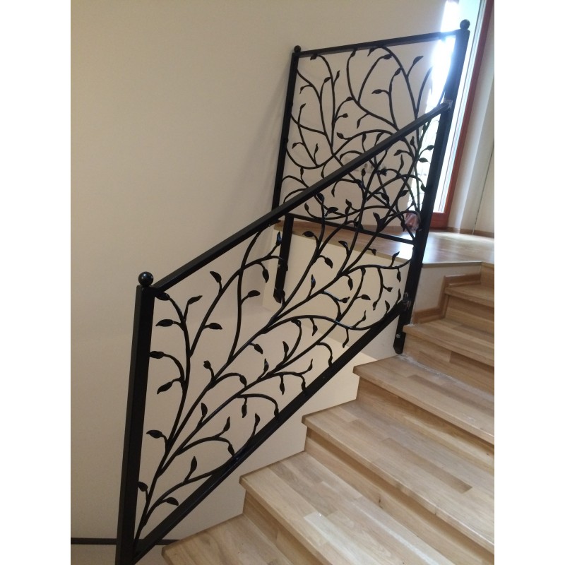 korlát faleveles 009. Gömbacélbol kovácsolt levelek ágakkal stilizált korlát tipus . ár 39800Ft /m. festés több variációban fekete , fekete ágak és bronzszinü levelekkel , vagy teljes bronz antikolással .