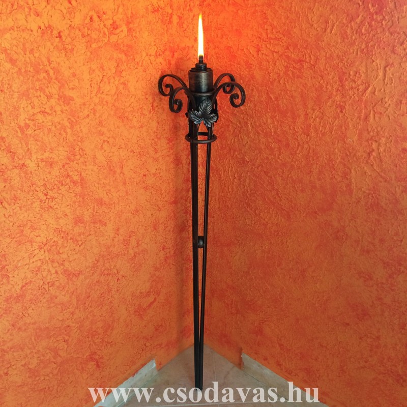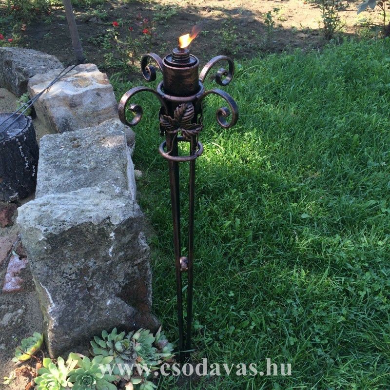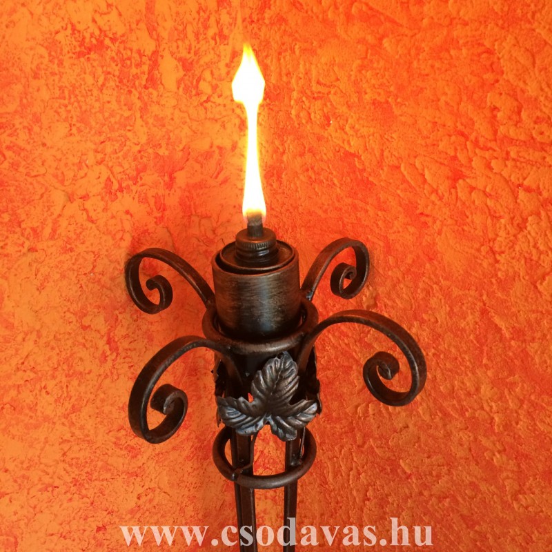 Kerti Fáklya lámpa. Leszúrható kézi kovácsolással készült fáklyalámpa Petroleum vagy szunyogriasztos olajjal feltölthető.