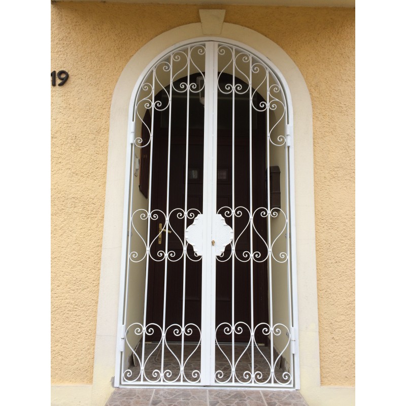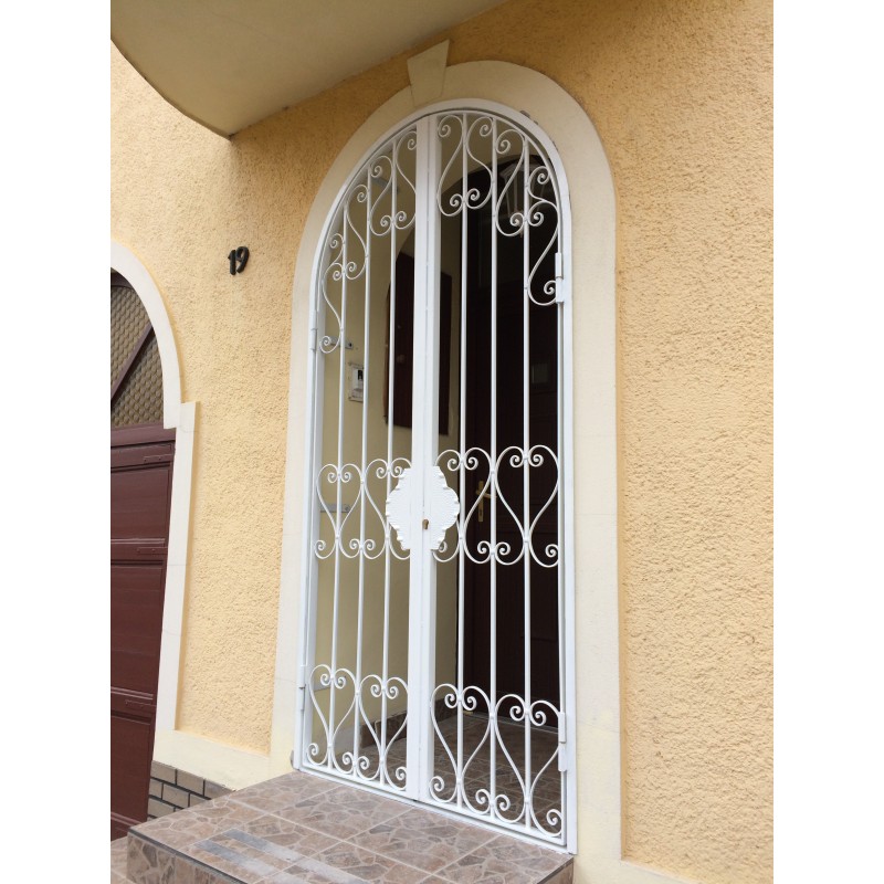 Kovácsoltvas biztonsági ajtó (Kétszárnyu) ives biztonsági ajtó,stabil zárás , egyedi méretekben is rendelhető ,magasság 240cm szélesség 140 cm , a képen látható ajtó ára 230000Ft.