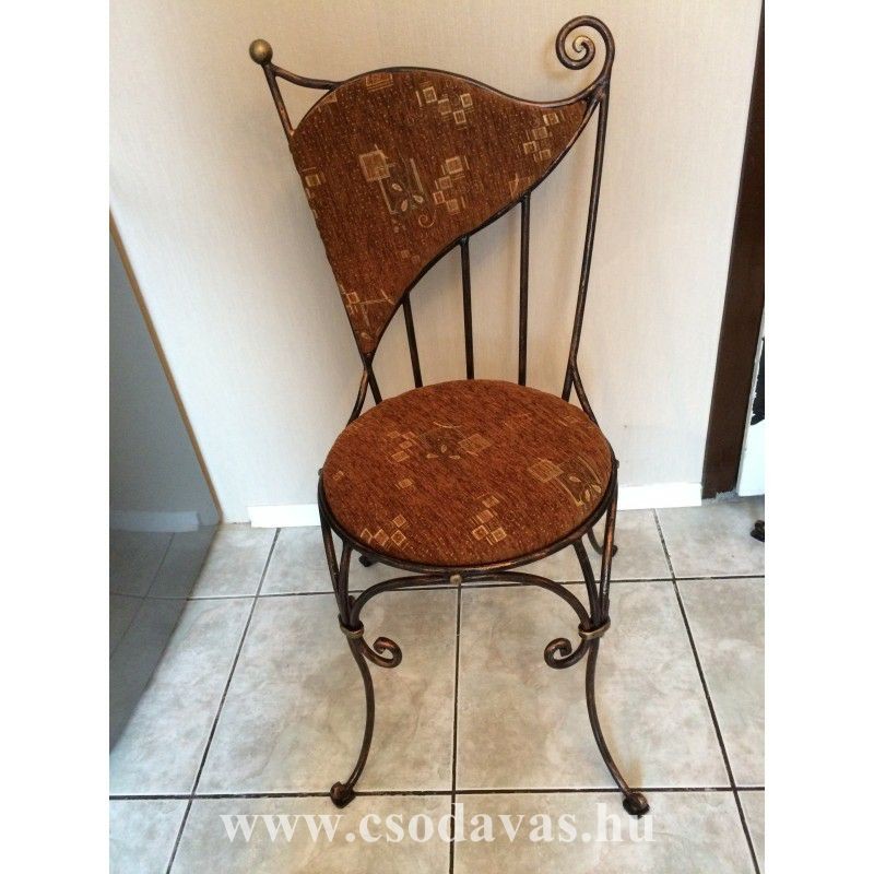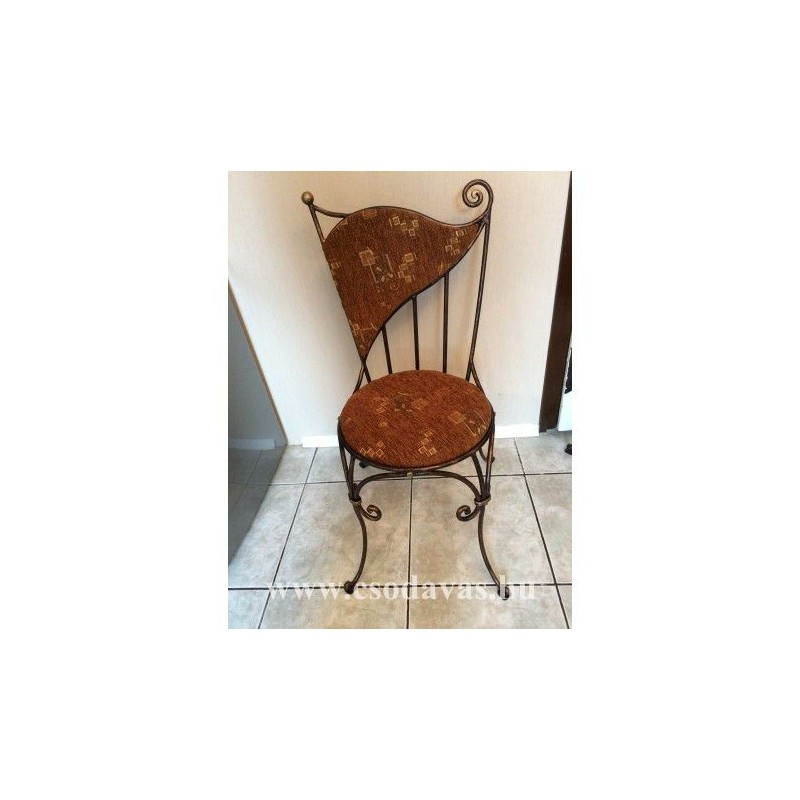 Kovácsoltvas Dorisz szék . Kovácsolt 12 gömbacélból,kárpitozott ,pántolt összefogatással , ára 38000Ft. rendelhető arany bronz ezüst antikolással .