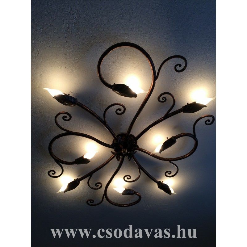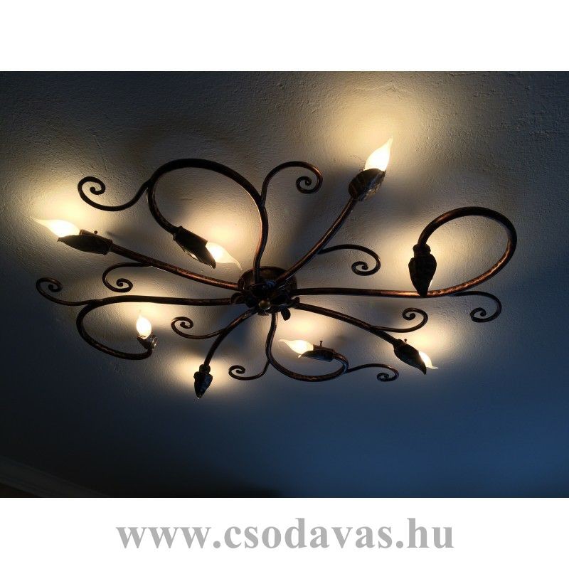 kovácsoltvas nyolcas csillár ,110cm hosszú ,80 cm széles , nyolc égős ,antikolt bronz szinben , ára 98000Ft , vezetékelés nélkül égők foglalat beszerelés nélkül is rendelhető igy az ár 68000Ft.