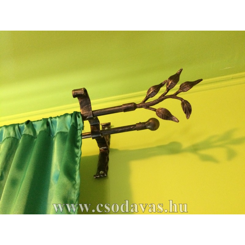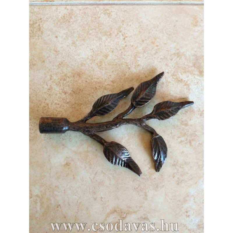 kovácsoltvas függönykarnis vég 2. 12 mm gömbacélbol kovácsolt levéldiszitéssel ,függönykarnis cső végére csavarozható,antikolt szinekben ára 2950Ft/db .